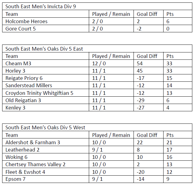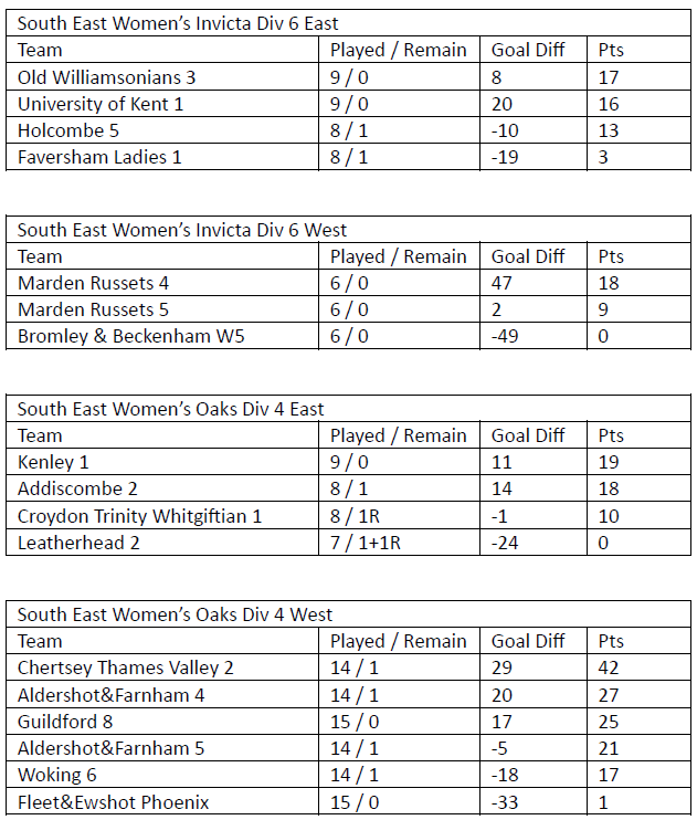 To avoid any surprises, the current status in these Divisions are reproduced below. The number of matches to be played against other non-Development sides is also listed. As you can see almost all games have now been completed in these Divisions but a number of positions are still in doubt over the final couple of weeks of the season.